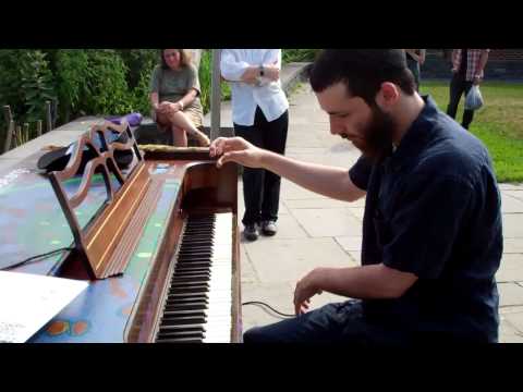 's career consists of playing pianos in parks when it's a nice weather outside, and, when it's cold, washing hands at the weddings: